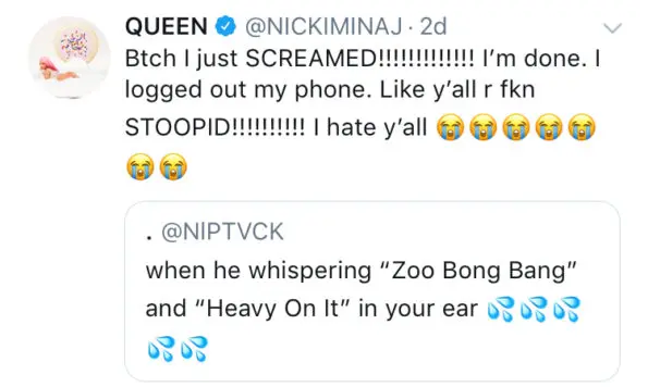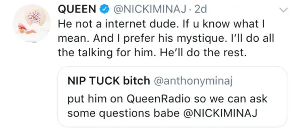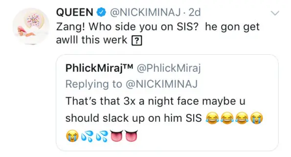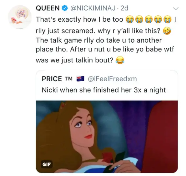 Nicki Minaj engaged with Twitter fans recently and the conversations got pretty titillating. A fan tweeted,