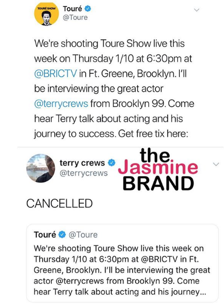 Crews canceling the interview comes amidst a story that Toure had sexually harassed a former co-worker in 2017. The music journalist, who appeared on Lifetime’s Surviving R.Kelly documentary, has since apologized to the woman who accused him of harassment. He has yet to respond on social media. [Click here for the story].