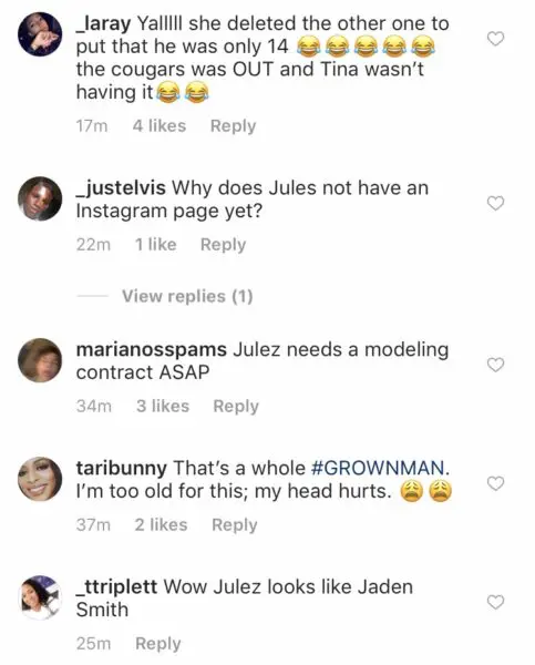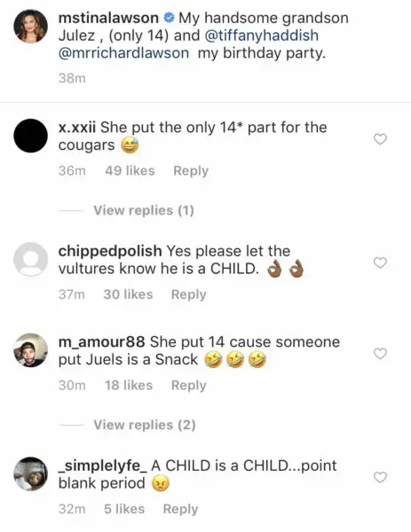 Mama Tina doesn’t play! Beyonce and Solange‘s mom, Tina Knowles Lawson, is fiercely protective of her cubs – which she recently showed on Instagram. She posted a slew of fabulous photos from her surprise 65th birthday bash, one of which featured her grandson – Solange’s son, Daniel “Julez” Smith, Jr. She subliminally let her hot-and-heavy followers know that Julez is still a teenager before they even thought to comment inappropriately. Her caption read: