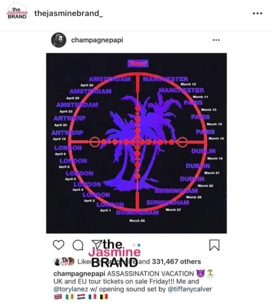 FIRST TIME EVER !!! … @champagnepapi & @torylanez w/ @tiffanycalver…. Tickets on sale Friday !!