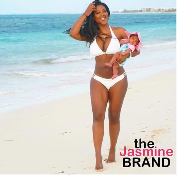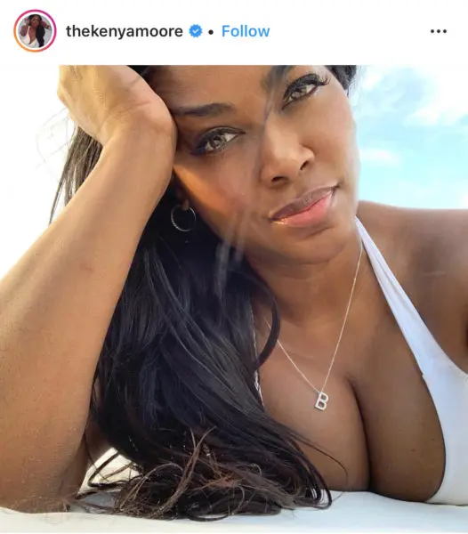 Kenya Moore is celebrating her birthday with her daughter Brooklyn by her side. Moore shared an image on Instagram to celebrate another year of life. Captured, was the 48-year-old mother in a white two-piece bikini on the beach as she glides across the sand, as her daughter sits on her hip.
