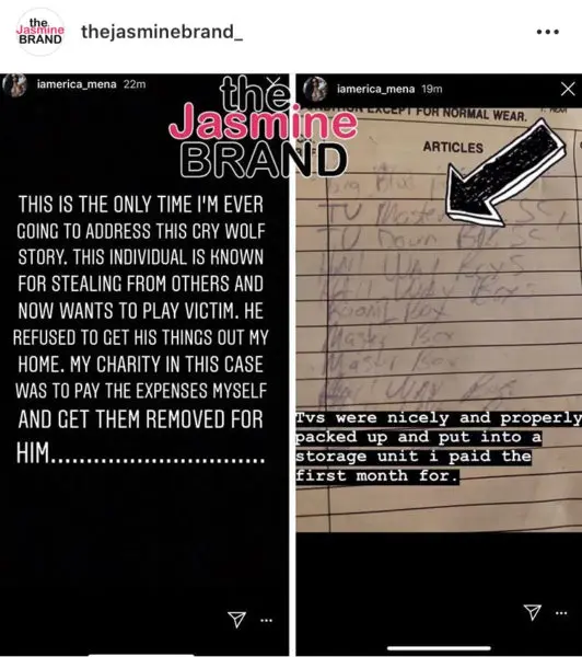 The ex-boyfriend took to social media in now deleted posts calling out Mena for allegedly stealing items from him.