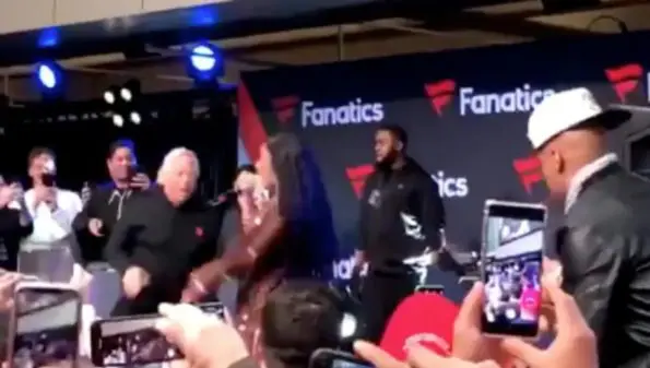 Came through off rhythm? The New England Patriots owner, Robert Kraft shows off some of his super bowl moves on stage in Atlanta with rapper, Cardi B at the Fanatics Super Bowl party hosted at the College Football Hall of Fame. During the Grammy nominated rapper’s performance, there where guests that included Jon Bon Jovi, Aaron Judge, Kevin Hart, NFL legends, Peyton Manning, Emmitt Smith, and Julius Erving.