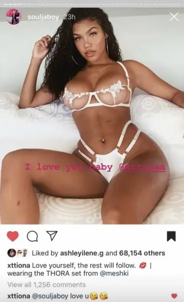 Meanwhile, Soulja is spending his time professing his love for another rumored girlfriend, Instagram model Tiona Fernan. Despite rumors of the incident with Kayla, he posted a lingerie-clad photo of Tiona on his Instagram Story with the following caption: