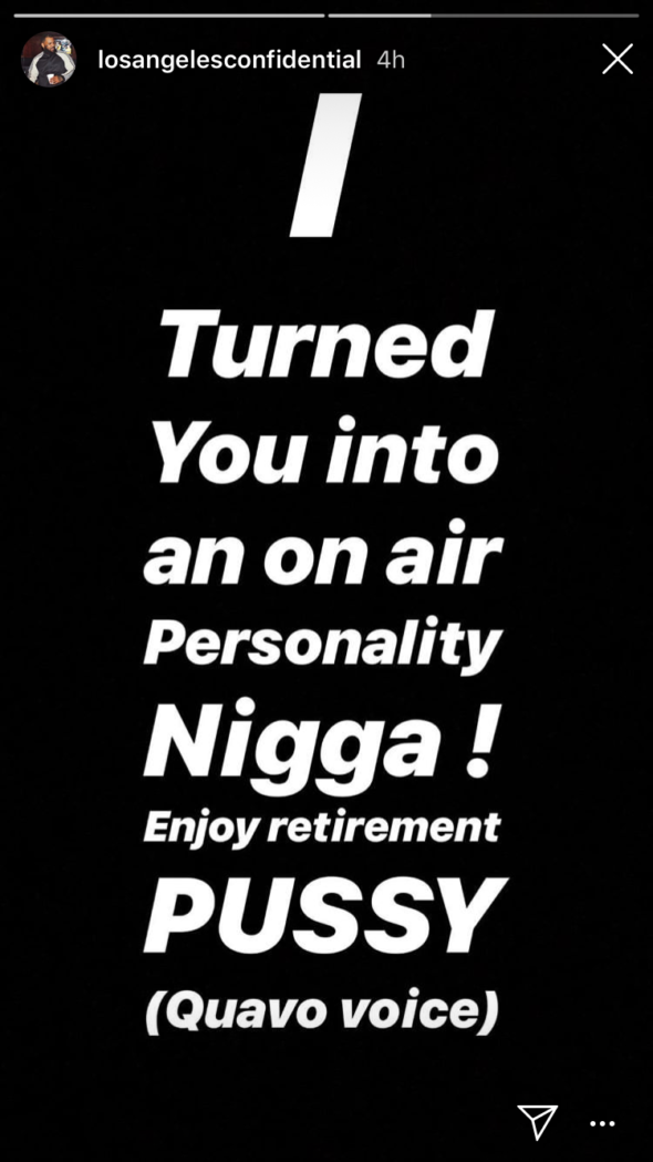 “The more I sat and thought about this, the more I said to myself, ‘n*gga, so what?’ What type of loser, face-a** n***a is you, n***a? I don’t give two f**ks about what anyone did before I was involved with them. To me, that’s more loser s**t.”
