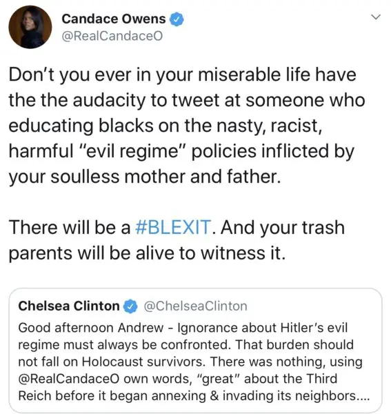Owens also responded back to Chelsea Clinton, Hilary Clinton’s daughter, after Chelsea tried to signal out her statements. Chelsea tweeted: