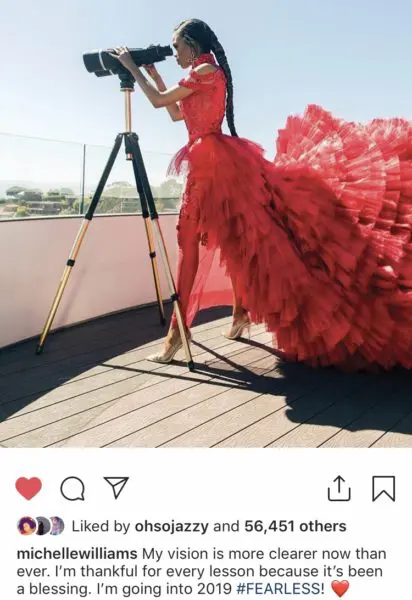 “@michellewilliams My vision is more clearer now than ever. I’m thankful for every lesson because it’s been a blessing. I’m going into 2019 #FEARLESS!”