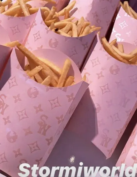 Jenner, 21, themed her daughter’s, Stormie Webster, first birthday celebration as “Stormi World,” a nod to dad Travis Scott‘s Astroworld. The celebration involved carnival rides, a Butterfly Rainbow Forest, and the cutest performance of Baby Shark. With any Kardashian/Jenner celebration, the food selections are always over-the-top as the Jenner served fries in pouches that resembled the Louis Vuitton logo with Stormi’s initials “SW” instead of “LV”.