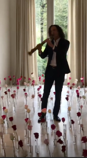 Surrounded by a floor full of roses in vases, Kenny also played Somewhere Over The Rainbow.
