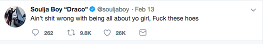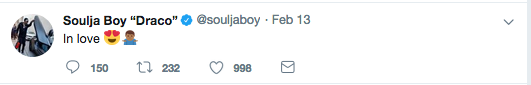 Their relationship seems to be something serious, as Soulja has alluded to being in a relationship with the mother of two within two different tweets. The day before Valentine’s Day, Soulja shared: