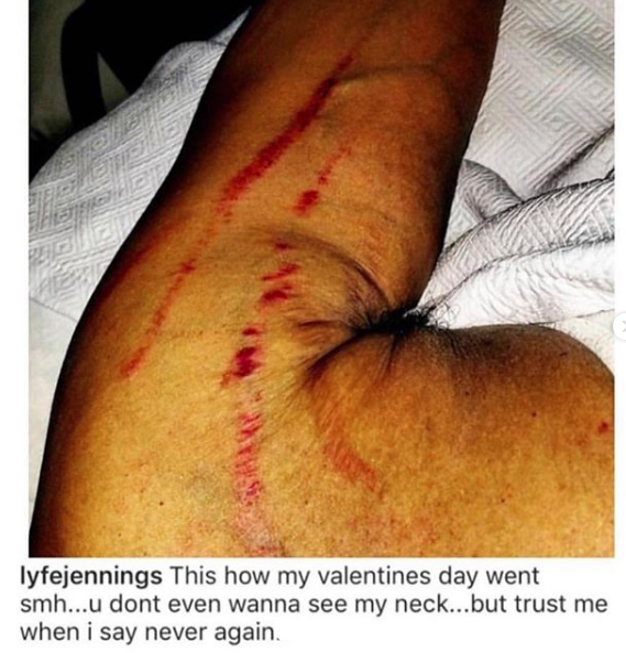 Lyfe Jennings had a rabid Valentine’s Day. In a deleted post, the singer shared a photo with various red scratches and slaps along (what appears to be) his left arm. Jennings shared the photo Valentine’s Day and captioned the startling photo:
