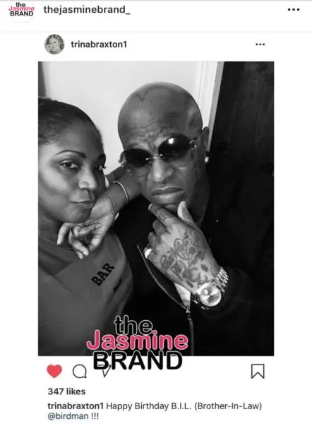 Toni’s sister, Trina, also shared a birthday message and called Birdman her brother-in-law. In a selfie of Trina and Birdman, her caption read: