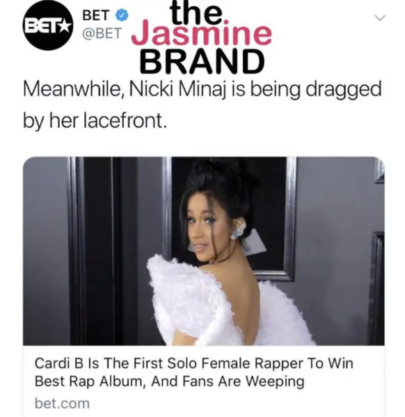 “BET is suppose to be, ‘Black Entertainment Television’ like, why would y’all do that. Why would y’all be petting two against the other. How can you congratulate one, because that’s what it was, it was a congratulations to Cardi for winning and then in your next breath, you know, you down grade someone else.”