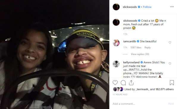 A few of Slick Woods’ uber-famous friends – including Cardi B, Jada Pinkett Smith, and Kelly Rowland – flocked to the comment section to congratulate Slick on her loving reunion.
