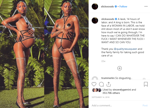 1) She is one of Rihanna‘s muses. She’s modeled for everyone from Tommy Hilfiger to Marc Jacobs, but is one of Rih Rih’s signature faces. Slick poses for Fenty Beauty, Savage X Fenty, and Puma Fenty. She even went into labor during the Savage X Fenty runway show!