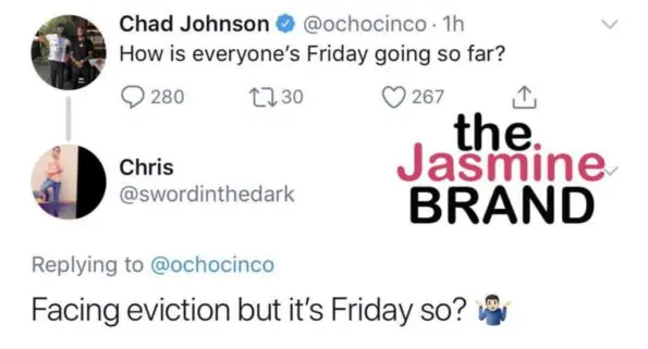 Former NFL player, Chad Johnson took to social media to interact with a few followers on Friday. The 6-time NFL Pro Bowler, asked how everyone’s Friday was going. In response to Johnson’s question, a fan responsed to Johnson mentioning he was at risk of being evicted from his home.