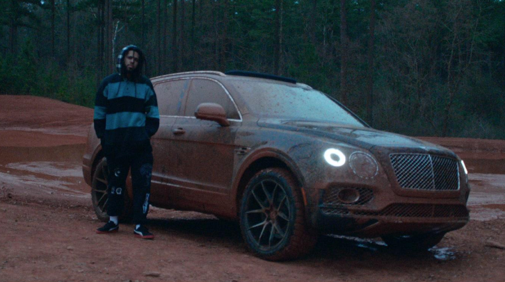 The Grammy nominated rapper’s new video is full of memorable scenes, including one were Cole and his crew go mudding in a Bentley Bentayga SUV. In another, he chills in a cabin with the heads of three rappers mounted above the fireplace. But nothing tops the final scene which speaks to the white consumption of black culture.