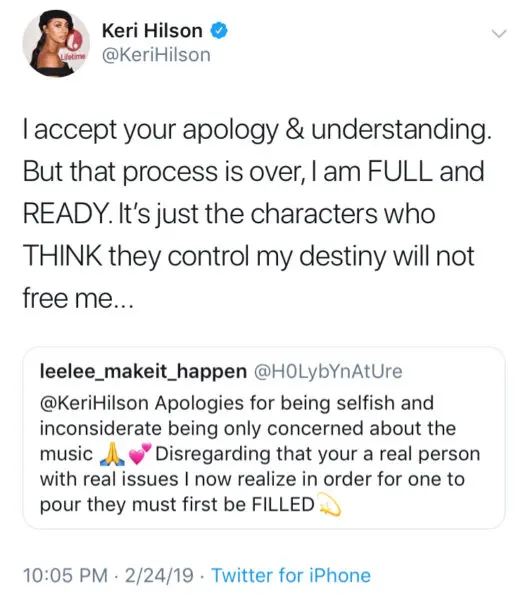 Keri Hilson has given a hint to why she hasn’t released any new music. The singer, who has taken a hiatus from her music career since 2010, posted a message about why she hasn’t been able to give anything new to her fans. In an Instagram post, the text read: