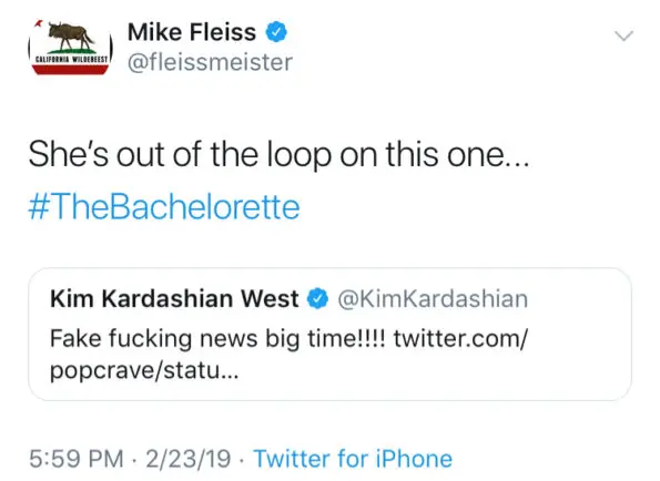 Fleiss responded to Kim’s tweet with a thread of counter responses. He quote tweeted Kim’s denial and stated: