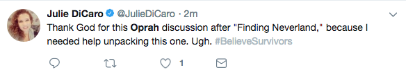 On Monday evening, Winfrey spoke to the stars of the docu, Wade Robson and James Safechuck, along with the director Dan Reed in front of an audience of sexual abuse survivors.
