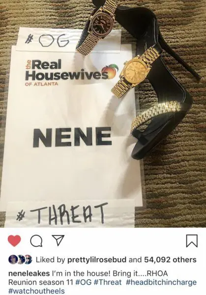 “@neneleakes I’m in the house! Bring it….RHOA Reunion season Reunion season 11 #OG#Threat #headbitchincharge#watchoutheels”