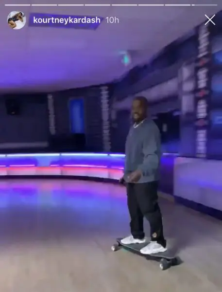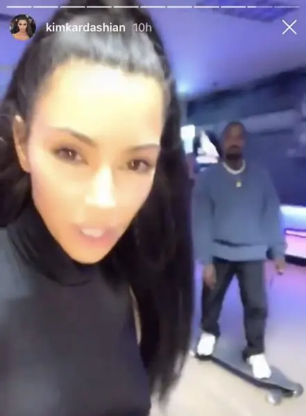 The Kardashian-West family decided to have a throwback family outing! Reality TV star Kim Kardashian-West captured some fun footage at the rollerskating rink with her husband, rapper Kanye West, and sister Kourtney Kardashian. The Calabasas legends glided around the rink to hits like Kanye and Jay Z‘s “N*ggas in Paris,” and Beyonce‘s “7/11.” However, the Wests seems to be hilariously confused about the outing. Kim seemed to be unclear about where they were! She told her Instagram followers: