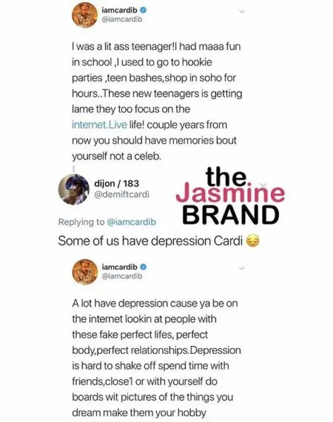 Cardi’s hospital stay came just hours after she gave fans advice on how to overcome depression.