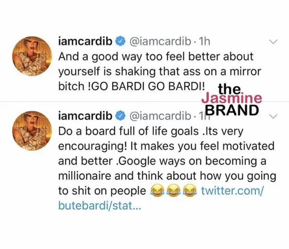 Still, in true Cardi fashion she ended her tweets with a positive message.