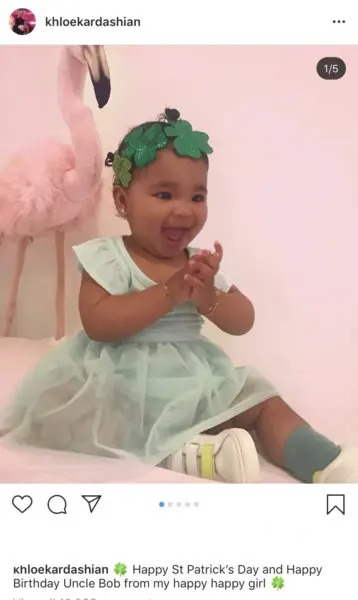 The two-year-old threw her father his own St. Patrick’s Day-themed birthday celebration Saturday. Kardashian turned 32 on Sunday.