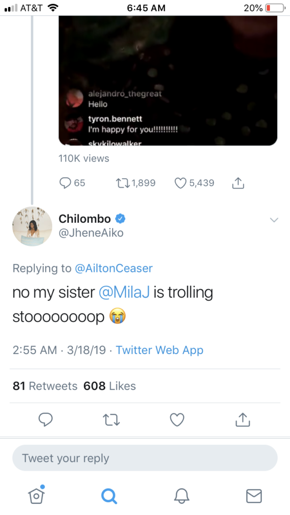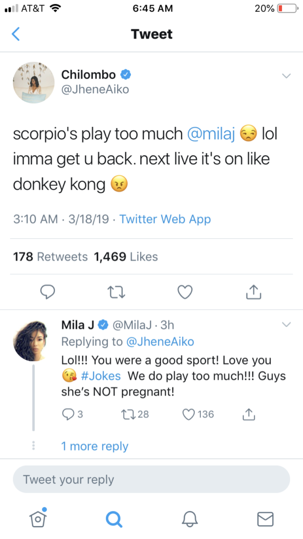 “Scorpio’s play too much @milaj lol imma get you back. Next live it’s on like donkey kong.”