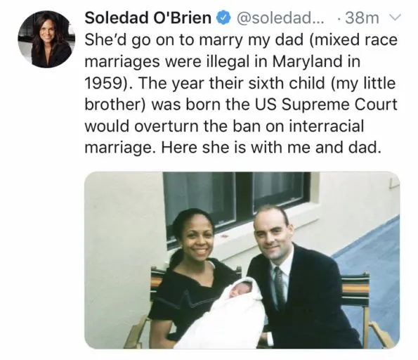 Soledad O’Brien mentioned that her parents were married before interracial marriage was made legal in the United States, and that her intelligent mother Estella once taught English at her high school.