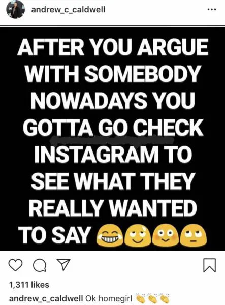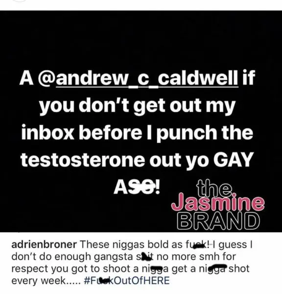 “A @andrew_c_caldwell if you don’t get out my inbox before I punch the testosterone out yo GAY A**!”