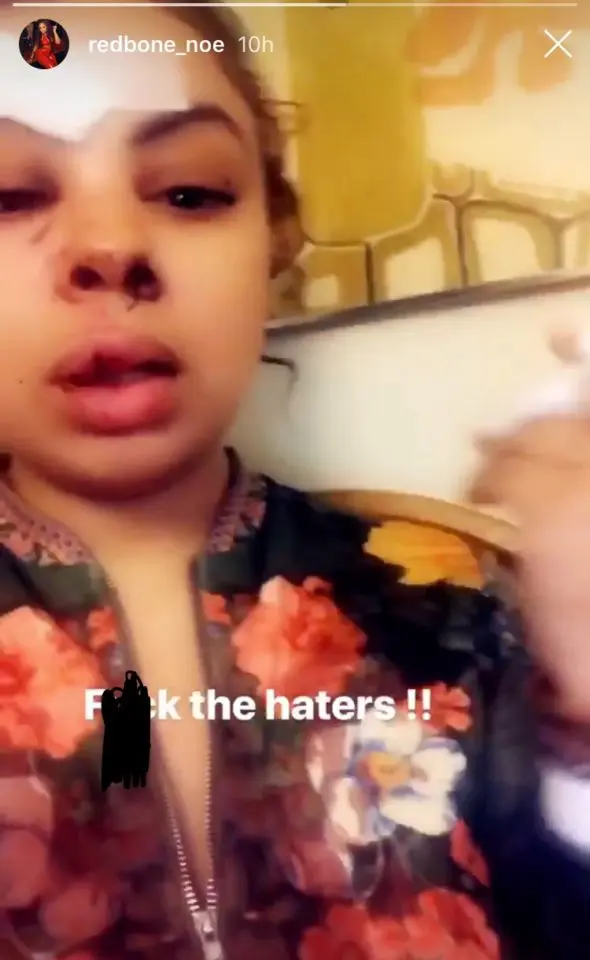Later in a now-deleted post to her Instagram stories, you can see that she was severely beaten, bruised and swollen from the attack. In the text on the post, she simply put, “F**k the haters.”