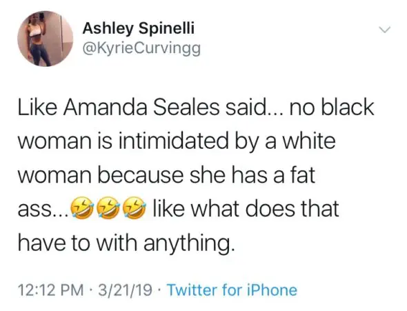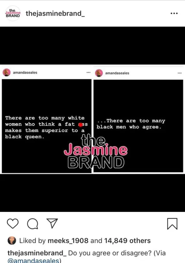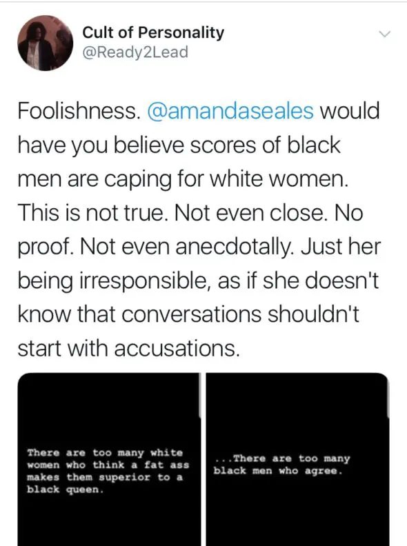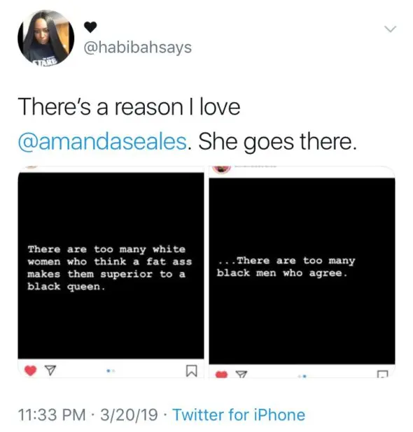 “There are too many white women who think a fat a** makes them superior to a black queen.”