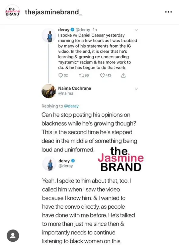 The fallout from singer Daniel Caesar’s recent controversial comments calling black people out for being “mean” to white people, is still continuing even as he is now attempting to apologize…sort of.