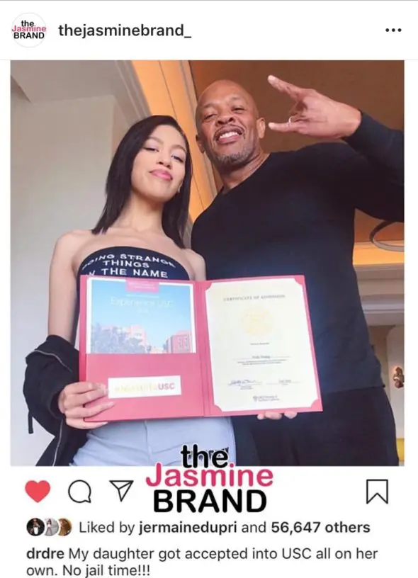 Dr. Dre took to social media, specifically Instagram, to boast about his daughter, Truly Young, getting accepted to USC. Although, it wasn’t as simple as that because Dre also used the opportunity to shade those who are currently wrapped up in the middle of the college admissions scandal.