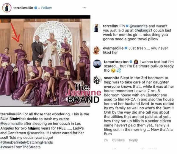 Eva’s cousin – Tamar Braxton‘s hair stylist, Terrell Mullin – blasted Seannita’s alleged fraudulent behavior on Instagram. He pointed her out in a picture of Eva’s wedding party with the following caption: