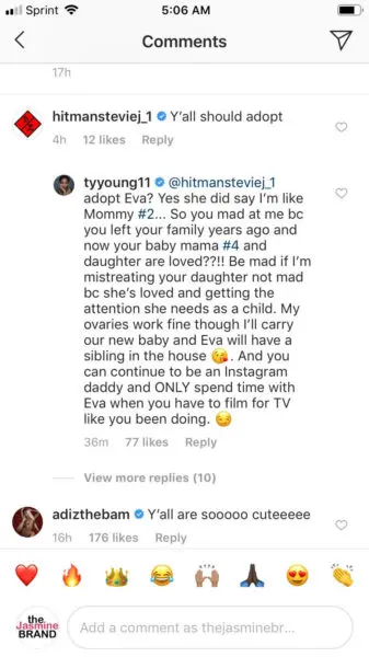 “Adopt Eva? Yes she did say I’m like Mommy #2… So you mad at me bc you left your family years ago and now your baby mama #4 and daughter are loved??!! Be mad if I’m mistreating your daughter not mad bc she’s loved and getting the attention she needs as a child. My ovaries work fine though I’ll carry our new baby and Eva will have a sibling in the house. And you can continue to be an Instagram daddy and ONLY spend time with Eva when you have to film for TV like you been doing”