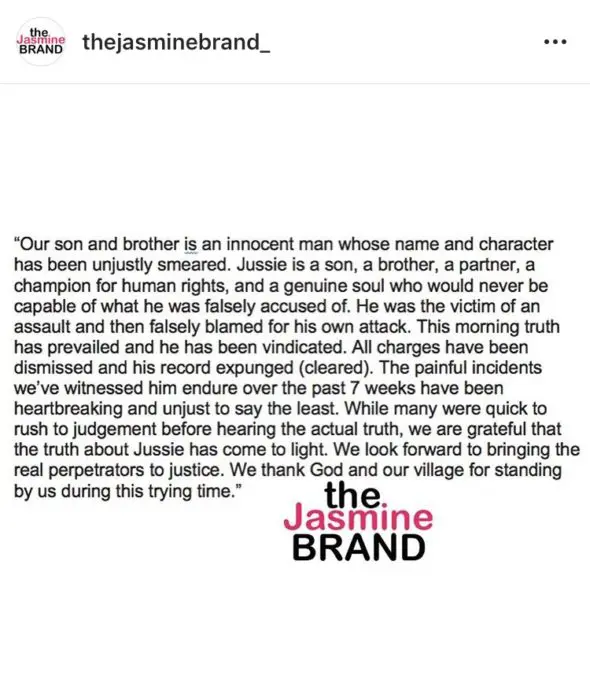 Following his press conference, the Smollett family released an official statement about the favorable decision in the case.