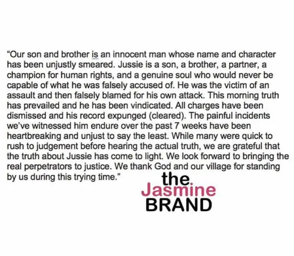 The Smollett family has since issued a statement, standing by their belief in Jussie’s innocence.