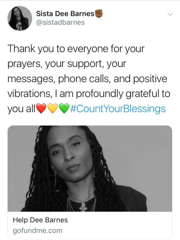 If you would like to donate to help Dee Barnes recover from her current situation, you may do so here.
