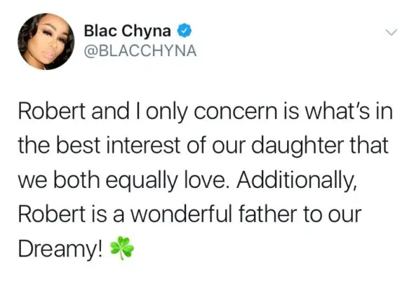 At one point, things got ugly between Kardashian and Chyna, but the two said last month that they are working on being at peace for Dream.