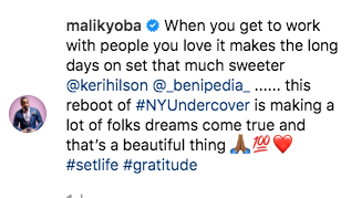 “NYUndercover #reboot…it’s happening. Grateful to be a part of a continued legacy. All thanks to you, @malikyoba!! Stay tuned… ?”