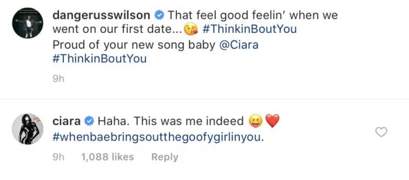 “That feel good feeling’ when we went on our first date. Proud of your new song baby.”