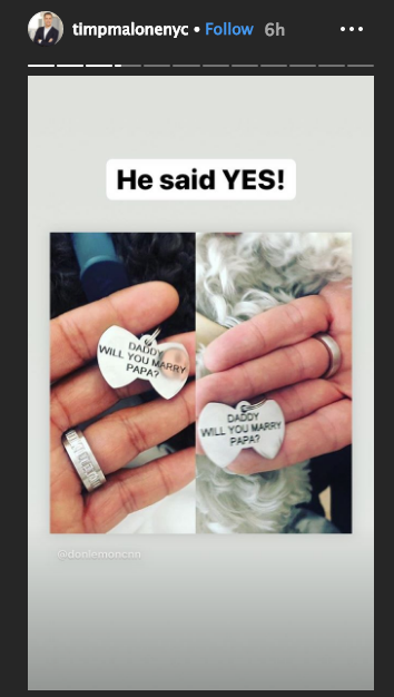 Don Lemon is off the market! Over the weekend, the 53-year-old CNN host and his 35-year-old real estate boyfriend Tim Malone got engaged! Tim popped the question, putting dog tags on the couple’s poodle mixes that said