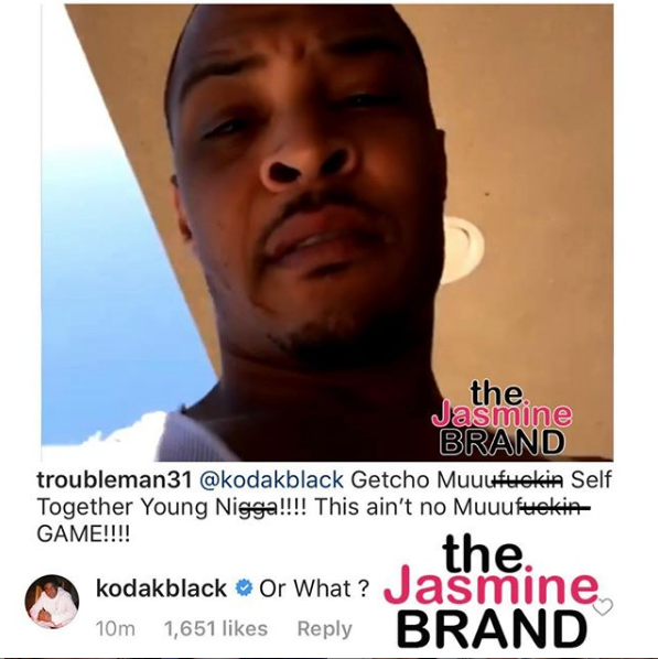T.I. caught wind of Kodak’s remarks and expressed his displeasure. He posted a video captioning it: