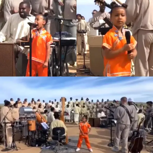 Is North West becoming the newest superstar in her super famous family? Rapper Kanye West and reality TV star/beauty mogul Kim Kardashian‘s oldest baby girl, North, seems to have inherited her knack for music honestly. The five-year-old model has been treating Kanye’s inspirational “Sunday Service” like her own personal concert! North grabbed the mic from her own special mic stand, and belted “As” by Stevie Wonder along with the massive choir.