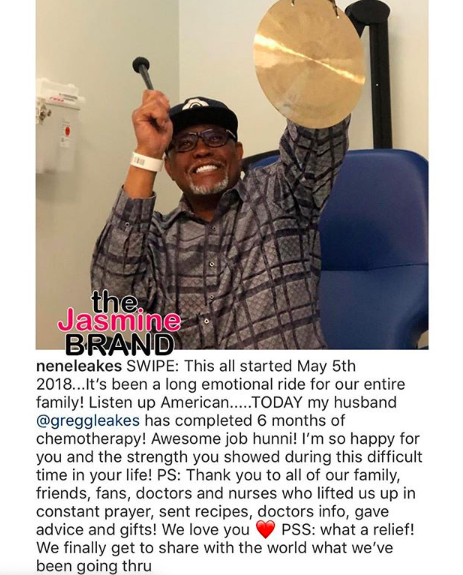 Leakes also gave an update on how her husband, Gregg Leakes is doing after finishing his final round of chemotherapy recently. Fans saw NeNe and Gregg’s battle as Gregg fought cancer on the current season of The Real Housewives of Atlanta.