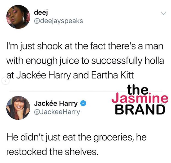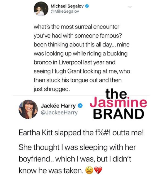 Don’t mess with Eartha Kitt’s man! According to Jackée Harry, she once learned this the hard way. The 227 actress recently shared on social media that things got physical at one point, when the legendary actress and singer (Kitt) learned she had sex with her boyfriend. Jackee explained this after the question was posed on Twitter: