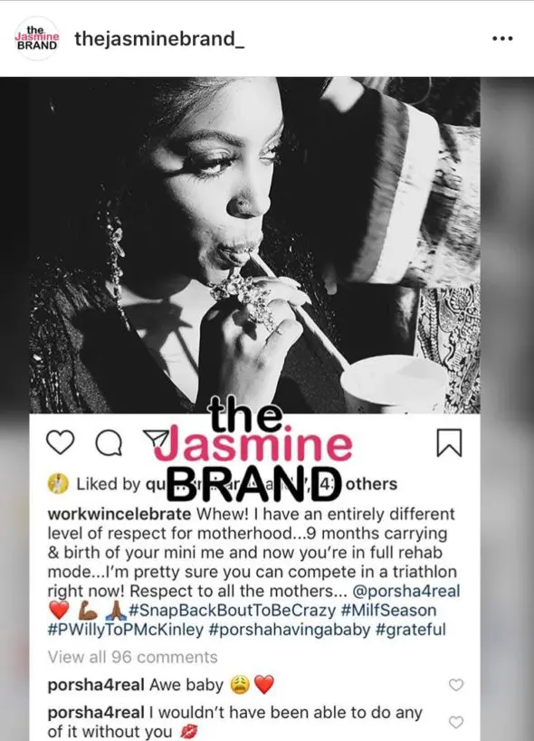 “Whew! I have an entirely different level of respect for motherhood…9 months carrying & birth of your mini me and now you’re in full rehab mode…I’m pretty sure you can compete in a triathlon right now! Respect to all the mothers… @porsha4real ?? ?? ??#SnapBackBoutToBeCrazy #MilfSeason #PWillyToPMcKinley #porshahavingababy #grateful”